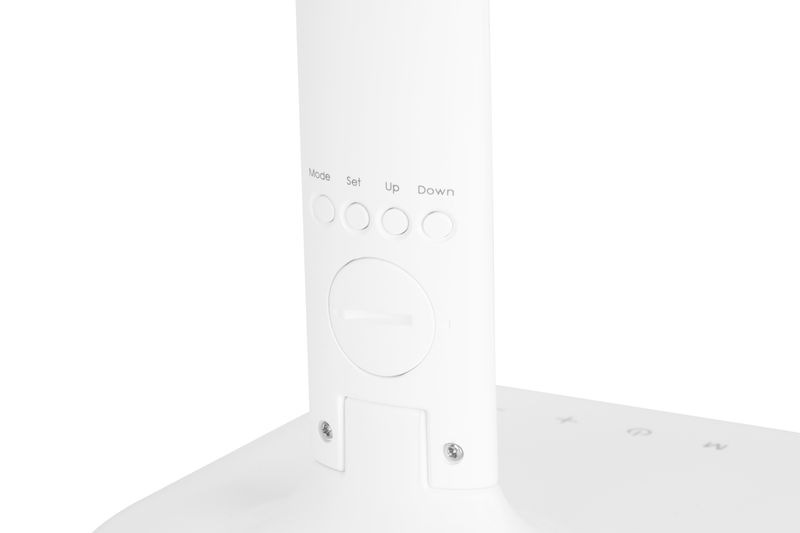 LED stolná lampa s plynulým stmievaním a displejom bude skvelou voľbou pri výbere spomedzi lámp. Možnosť voľby medzi 3 farbami svetla - neutrálna, biela alebo studená biela. Perfektným doplnkom na tejto lampe je displej s funkciou času, teplomera, budíka a kalendára. Má dotykové spínanie. Farba: biely lesk. Rozmer: 150x150x330 mm.