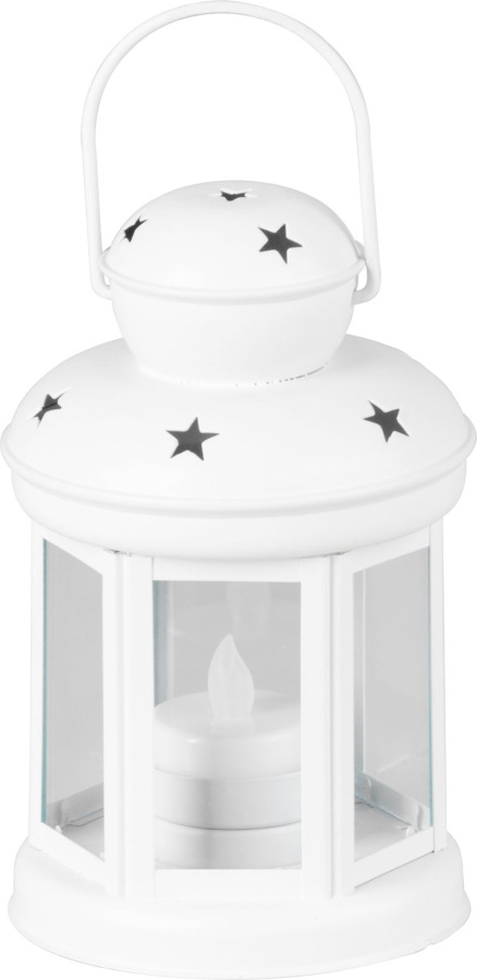Lampáš MagicHome Vianoce, biely, s LED sviečkou teplá biela, 10x15/20 cm, pohyblivý plameň