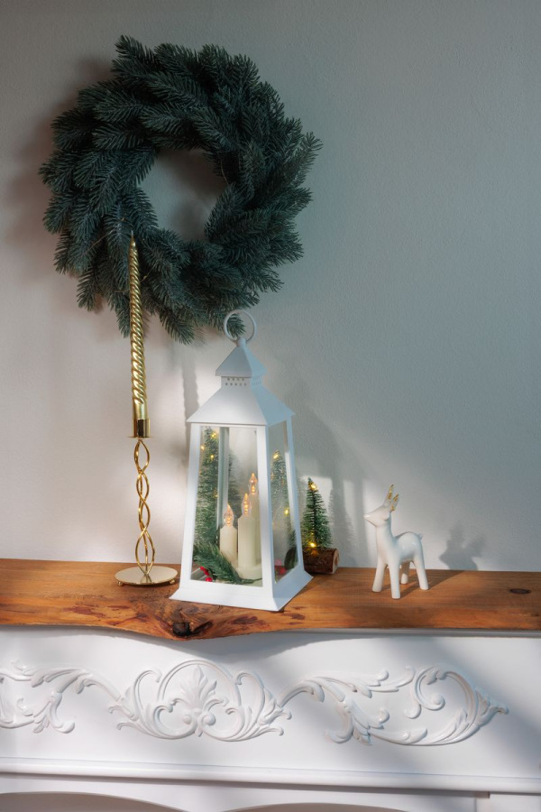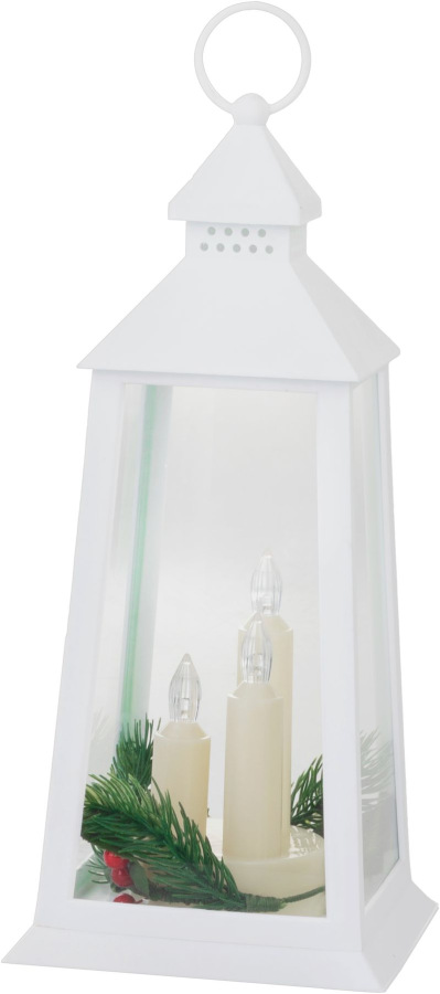 Vianočný lampáš MagicHome v elegantnom bielom prevedení s imitáciou sviečok je krásnym doplnkom, ktorý navodí príjemnú atmosféru sviatkov. Vďaka 3 žltým LED svetlám vytvára efekt jemného, teplého svetla, ktoré pôsobí ako skutočné plamienky sviečok.