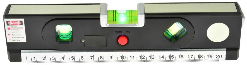 Laserová vodováha 245 mm, podsvietená, 3 libely, zvinovací meter 1,5 m, GEKO