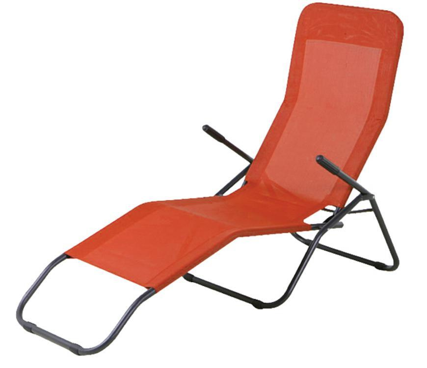 Oranžové záhradné lehátko je určené na vonkajšie sedenie alebo ležanie. Konštrukcia je vyrobená z kovu, časť na ležanie je pokrytá pevnou sieťovinou. Lehátko je možné nastaviť do dvoch polôh, pre sedenie alebo ležanie. Lehátko je možné zložiť, čím nezaberá veľa priestoru a je praktické na prenos a uskladnenie. Lehátko nie je určené na komerčné účely. Rozmery rozloženého lehátka sú 140 x 60 x 96 cm.