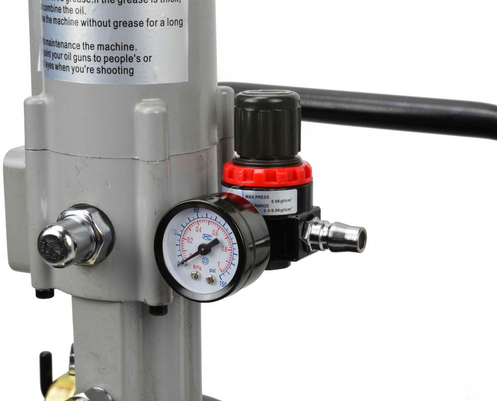 Mazací lis je vybavený pneumatickým čerpadlom, ktoré je možné pripojiť priamo ku kompresoru.