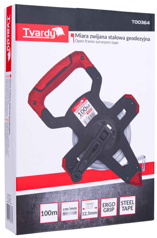 Meracie pásmo s oceľovou páskou 100 m na držiaku s rukoväťou, TVARDY