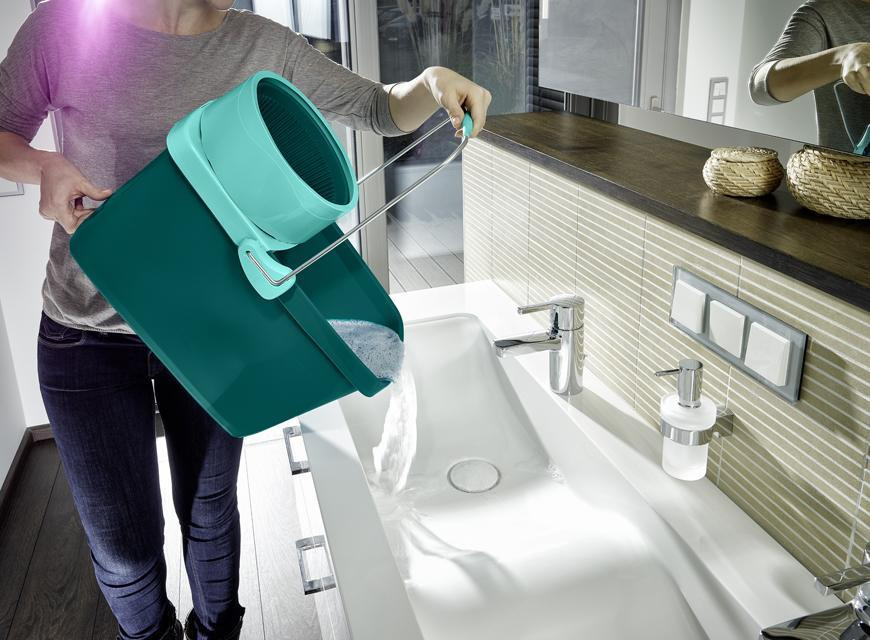 Rotačný upratovací set určený na umývanie podláh bez kontaktu rúk a špinavej vody. Pre všetky typy podláh – parkety, lamino a drevo. Novinkou proti minulej verzii je rotačný systém umiestnený priamo v držadle, možnosť rýchleho ukončenia priamo užívateľom, nová veľká rotačná komora, ktorá sa dá jednoducho a rýchlo zasadiť do vedra, univerzálne 20l vedro s jedným držadlom. 360° rotácia umožňuje vytieranie do osmičiek. Návlek prakticky umiestnený po celej dĺžke vytieracej plochy. Vymeniteľné návleky zo špeciálnych mikrovlákien s výbornou absorpciou nečistôt, možné prať v práčke bez aviváže. Záber mopu 33 cm. Záruka 3 roky.