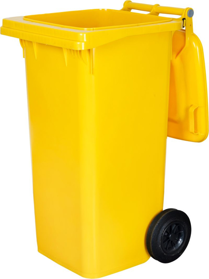 Nádoba na odpadICS GB4s objemom120 litrovvžltej farbeje robustná a praktická popolnica určená nazber a skladovanie komunálneho odpadu. Vyrobená zodolného plastu, ktorý jerezistentný voči poveternostným vplyvom, UV žiareniu a mechanickému poškodeniu, čo zabezpečuje jej dlhú životnosť.