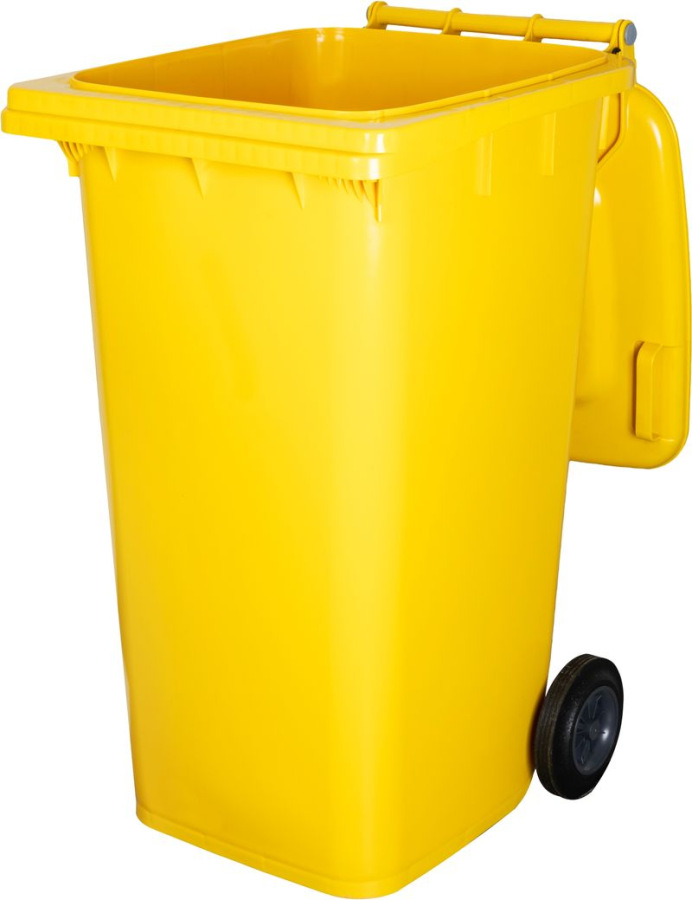 Nádoba na odpad ICS GB4 s objemom 240 litrov v žltej farbe je robustná a praktická popolnica určená na zber a skladovanie komunálneho odpadu. Vyrobená z odolného plastu, ktorý je rezistentný voči poveternostným vplyvom, UV žiareniu a mechanickému poškodeniu, čo zabezpečuje jej dlhú životnosť.