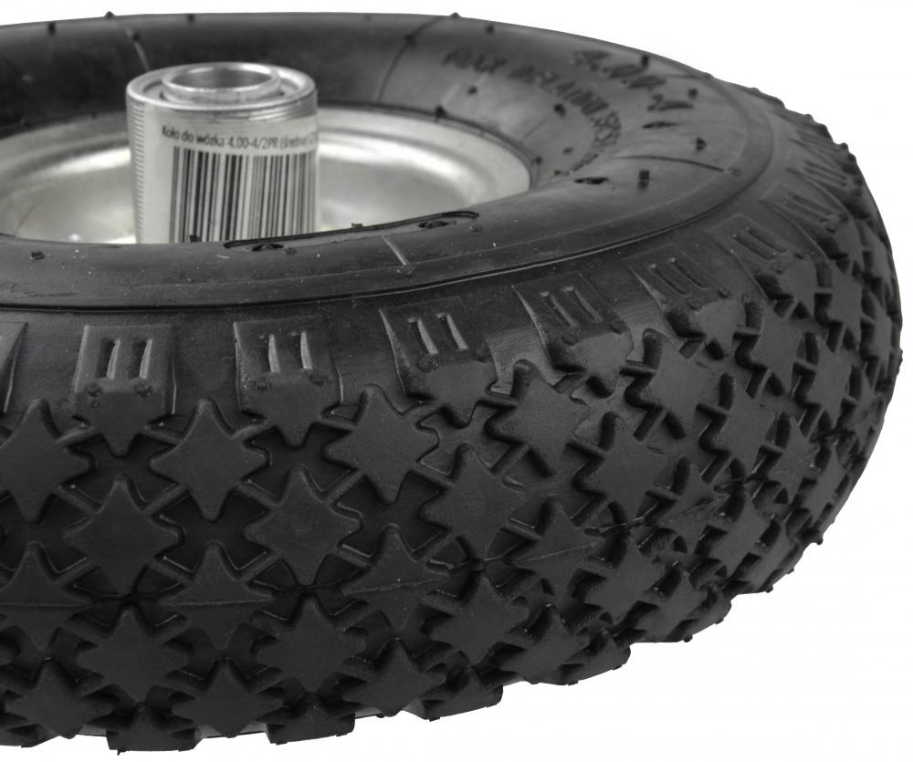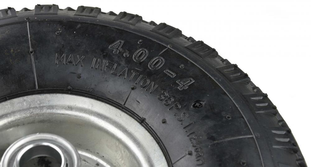 Nafukovacie koleso 2PR s maximálnym zaťažením do 136 kg. Odolný práškový lak a kovový disk poskytuje zvýšenú stabilitu. Celok je vyrobený z vysoko kvalitných materiálov.
