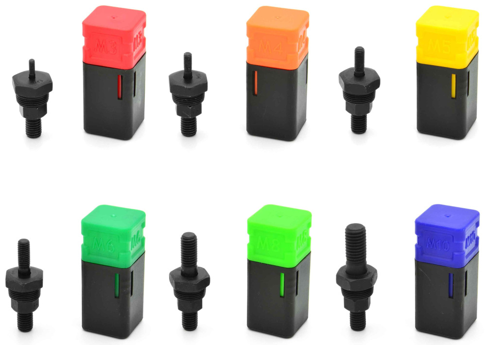 Sada hlavíc pre nitovacie matice veľkosti M3, M4, M5, M6, M8, M10. Hlavy vyrobené z vysoko kvalitnej chróm-molybdénovej ocele, ktorá sa vyznačuje zvýšenou rázovou húževnatosťou, vďaka čomu je ideálna pre takéto aplikácie.