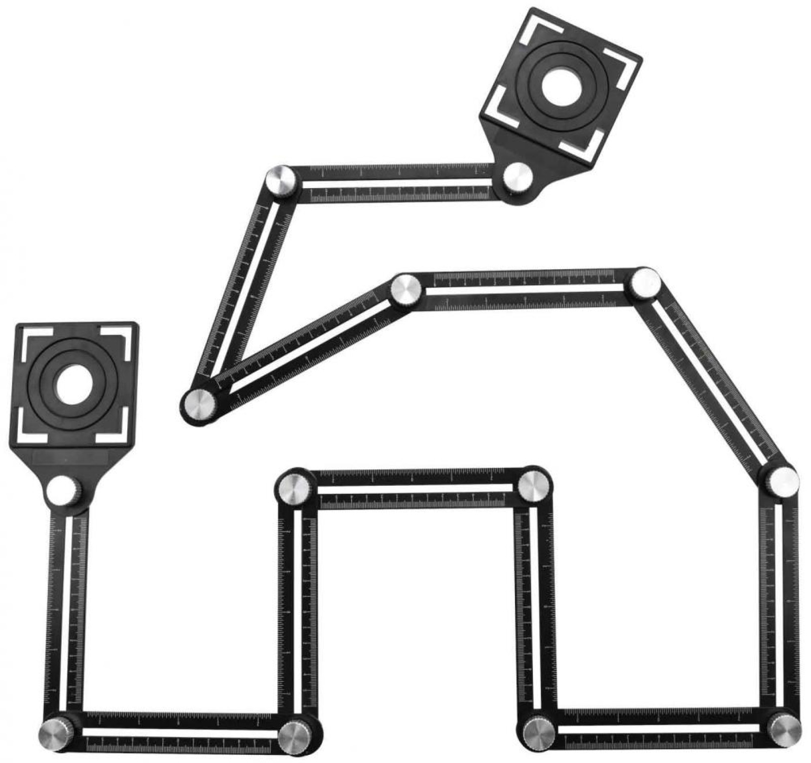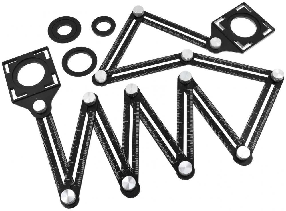 Nastaviteľná hliníková šablóna 12 ramenná. Používa sa na mapovanie tvarov, otvorov na dlaždiciach, kameniny, glazúre, skle a dreve.
