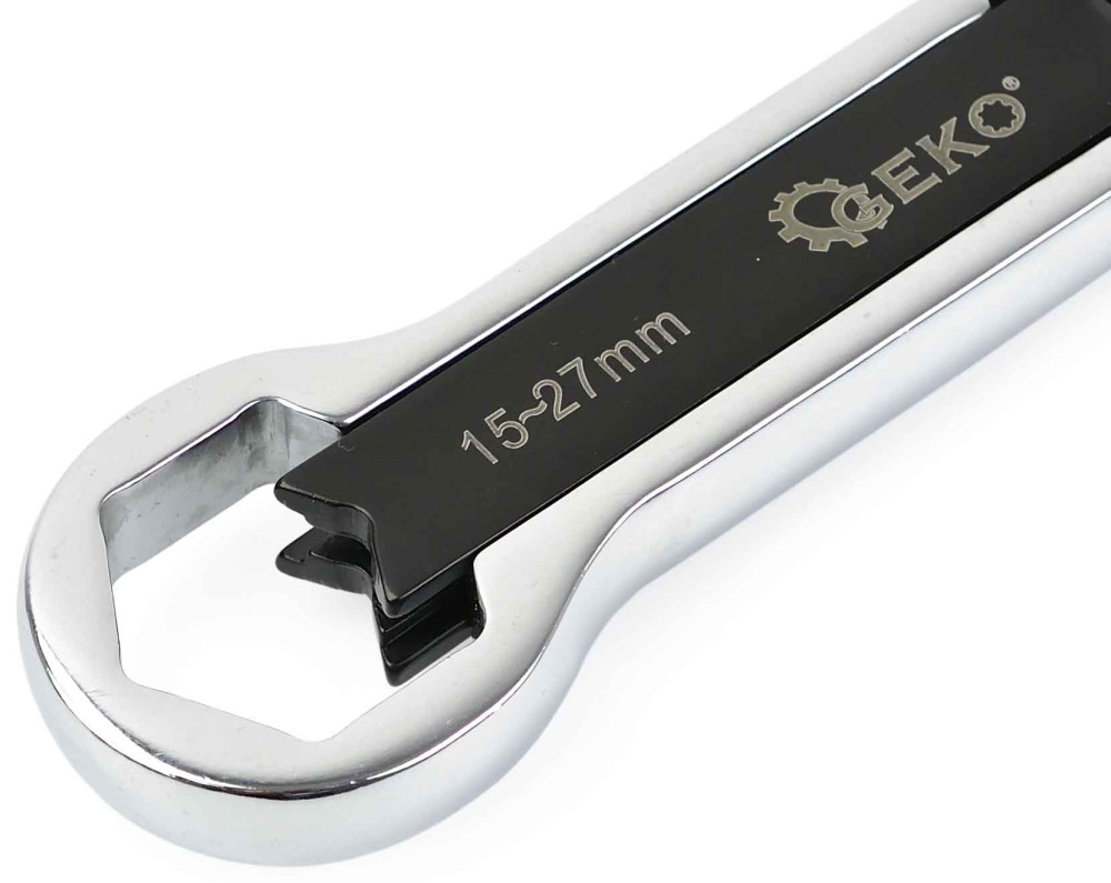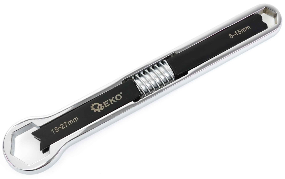 Nastaviteľný očkový kľúč - obojstranný 5-15 mm/15-27 mm CrV, celková dĺžka 24 cm, GEKO