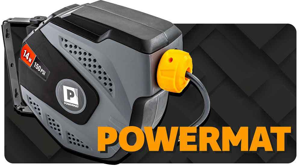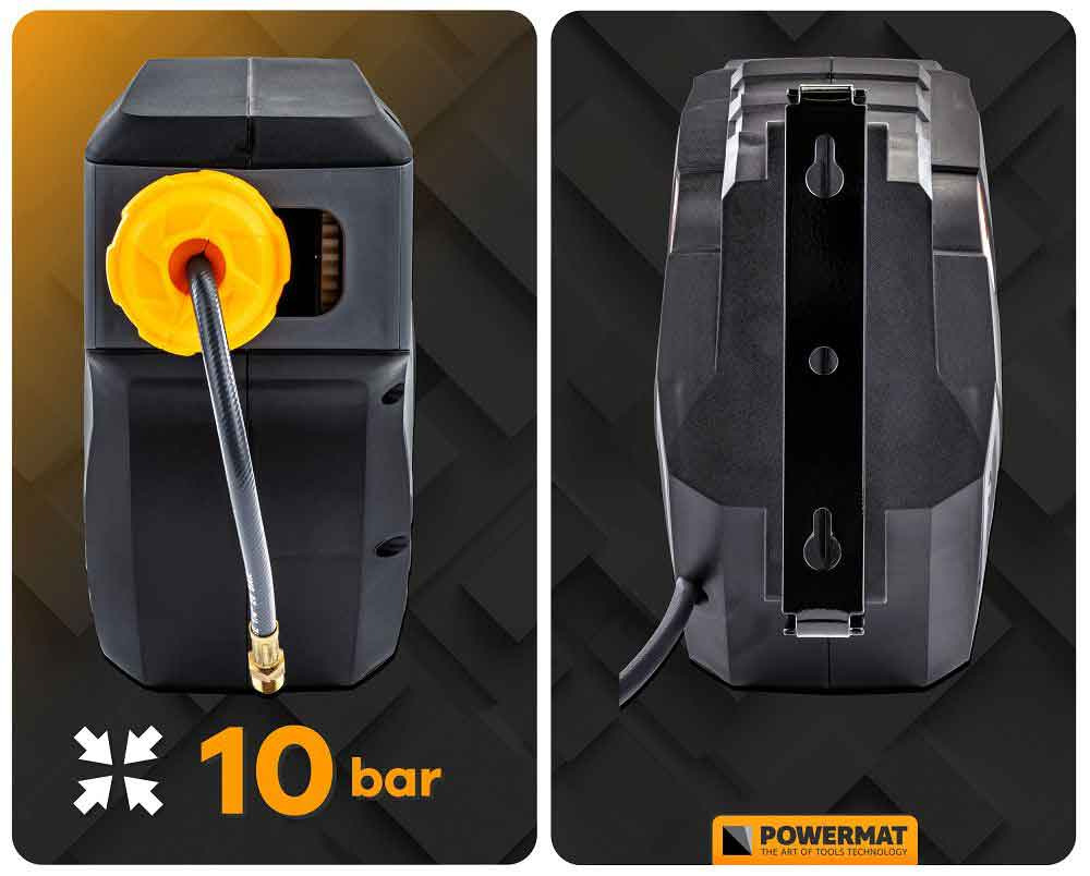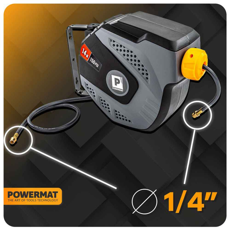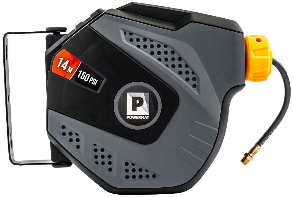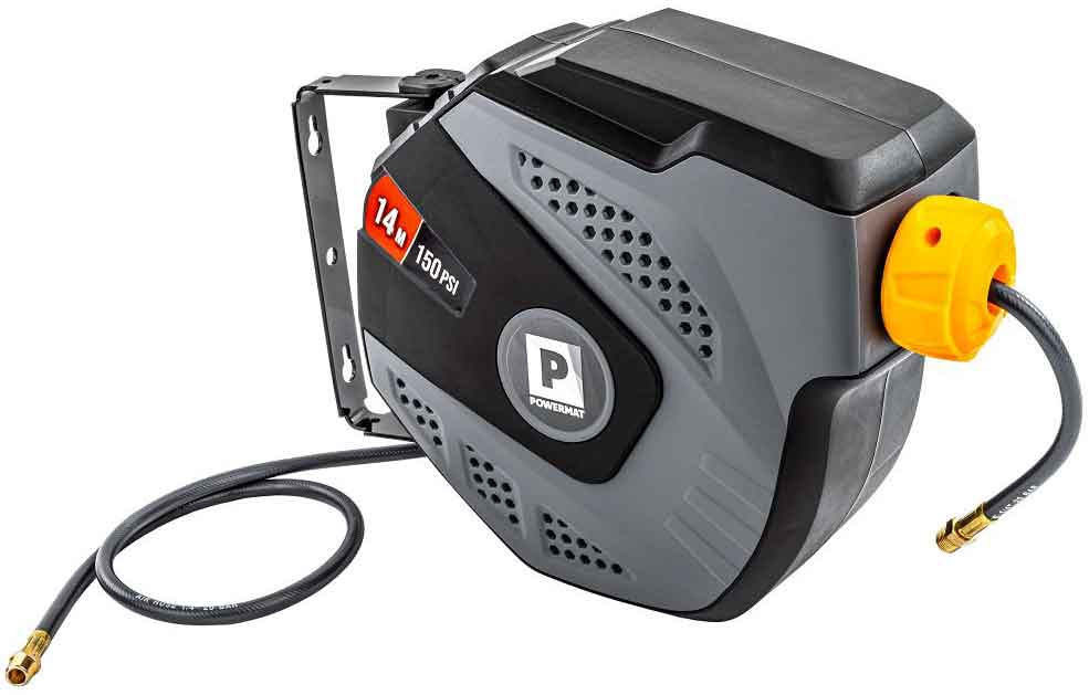Navíjací bubon s držiakom na stenu s hadicou na vzduch, 6,5 x 10 mm, dĺžka 14 m, POWERMAT