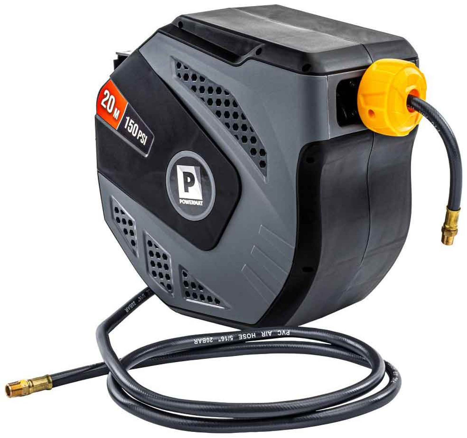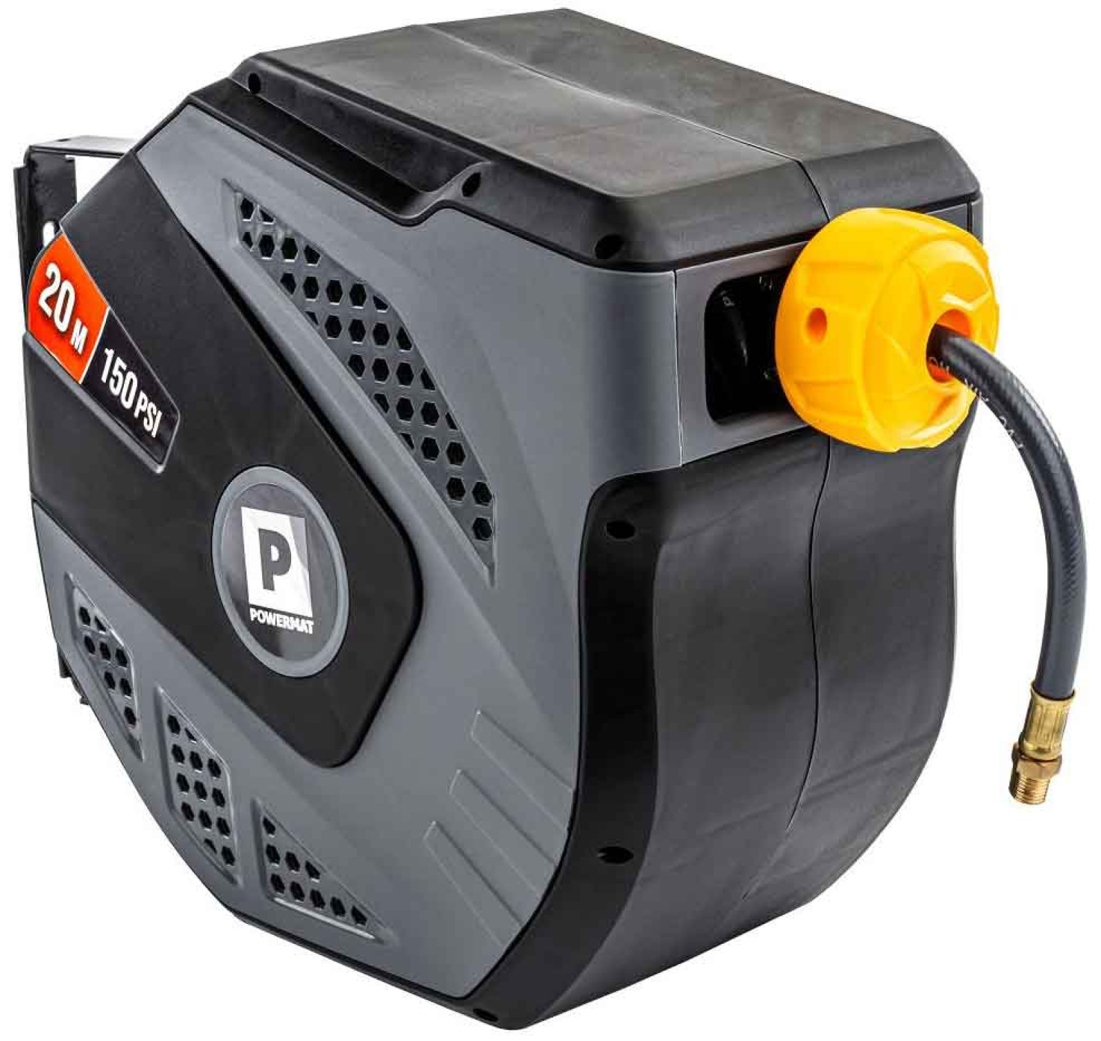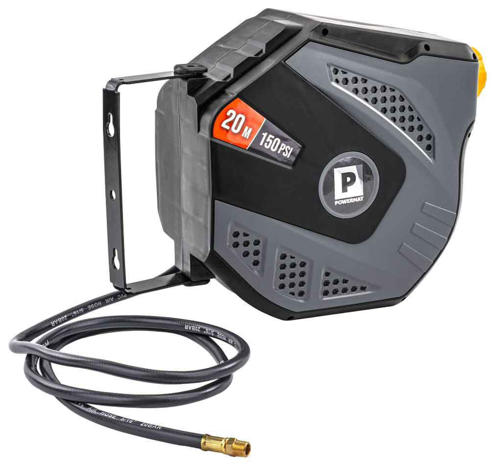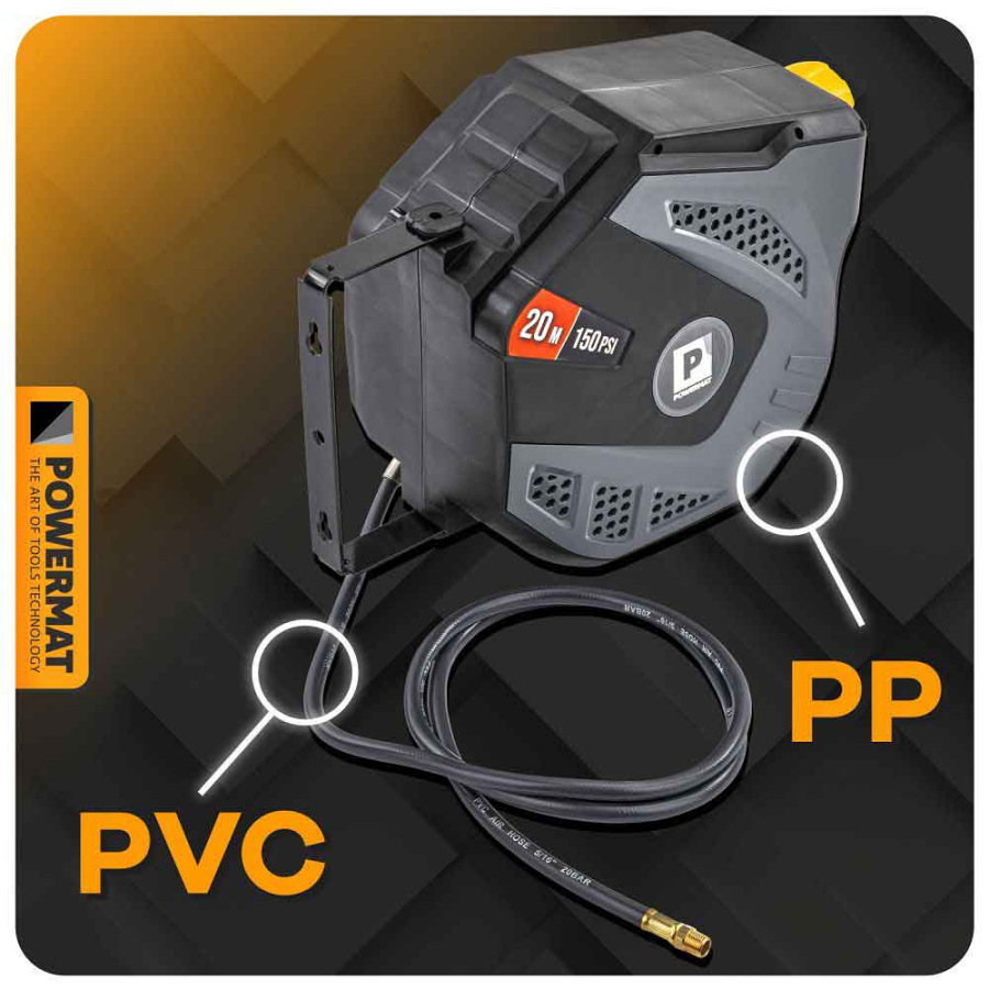 Navíjací bubon s držiakom na stenu s hadicou na vzduch, 8 x 12 mm, dĺžka 20 m, POWERMAT