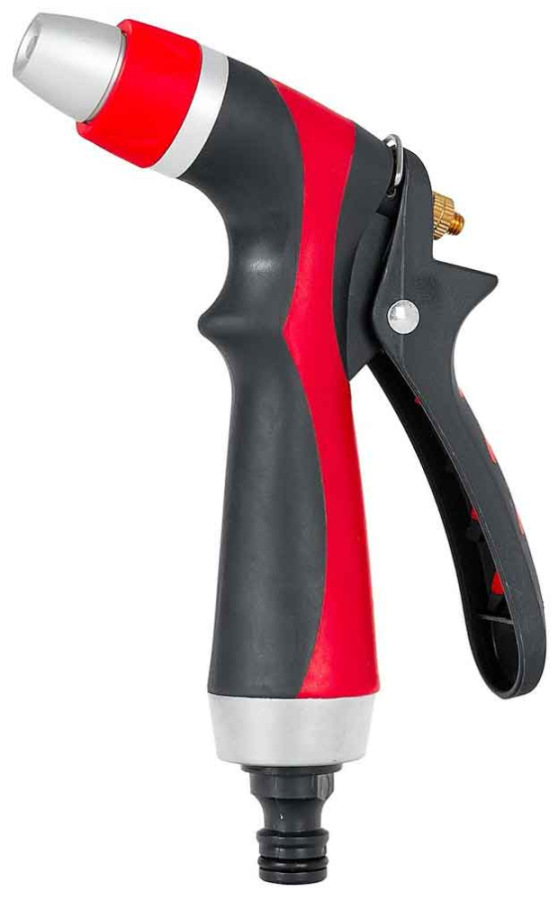Sada obsahuje ergonomickú záhradnú pištoľ , ktorá umožňuje nastaviť silu a typ vodného prúdu.