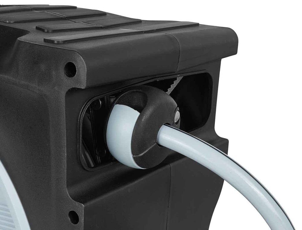 Vďaka automatickému mechanizmu navíjania sa hadica po použití automaticky vráti do puzdra. Systém vedenia hadice zabraňuje jej zalomeniu a poškodeniu.