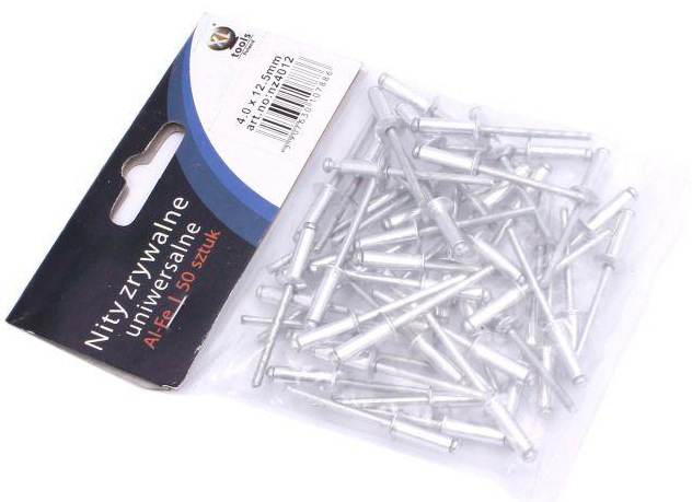Štandardné slepé nity určené pre všetky ručné a pneumatické nitovače, ktoré pracujú s daným rozmerom nitov. Hliníková nitovacia hlava a oceľový kolík zaisťujú ľahké vyberanie a trvalé pripojenie. Balené 50 ks.
