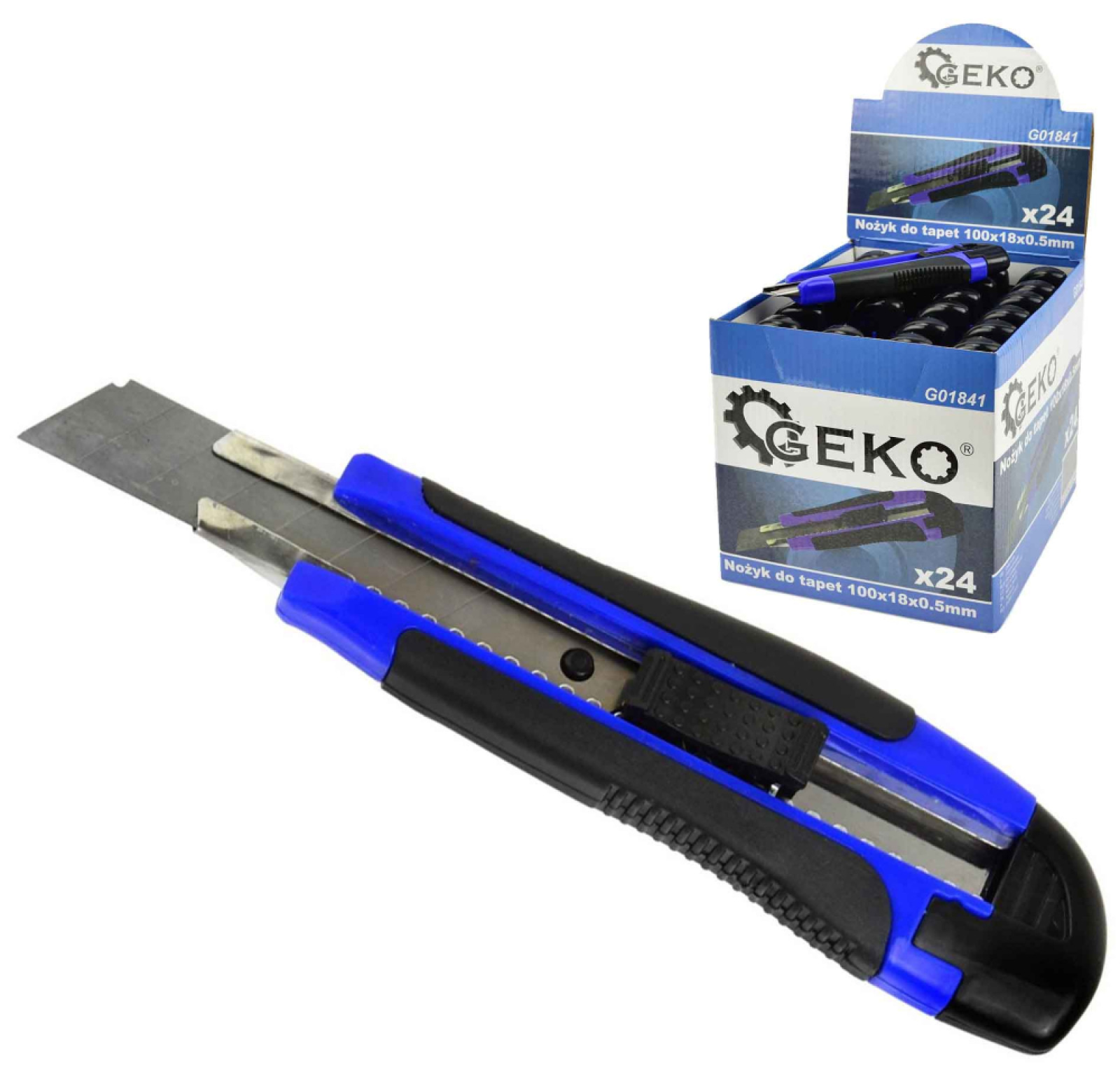 Nôž s ulamovacou čepeľou 18 mm, plastový s tlačítkom model 1, GEKO