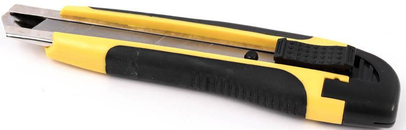 Nôž s ulamovacou čepeľou 18 mm, má zásobník s náhradnými čepeľami, kovové vedenie čepele a západku. Používa sa tiež na rezanie tapiet.