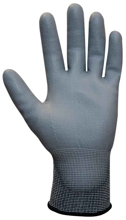 Rukavice na ochranu pred mechanickými rizikami, vyrobené z pleteného nylonu a spandexu s prídavkom sklenených vlákien (priadza HPPE, hrúbka 13 U2), potiahnuté sivým polyuretánom. Priadza HPPE vytvára mimoriadne odolné a odolné rukavice, vďaka čomu sú vhodné do najnáročnejších pracovných prostredí.