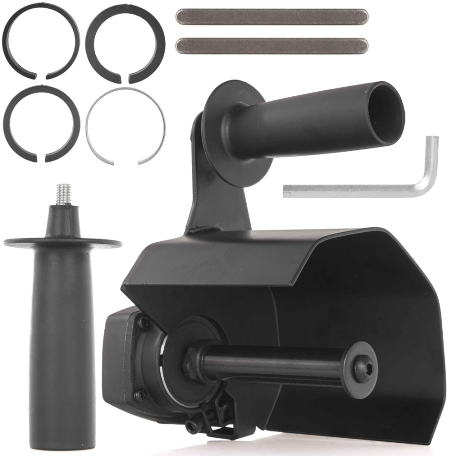 Nadstavec sa vďaka sade adaptérov rôznych priemerov hodí na všetky uhlové brúsky so závitom M14 bez ohľadu na značku alebo model vašej brúsky.