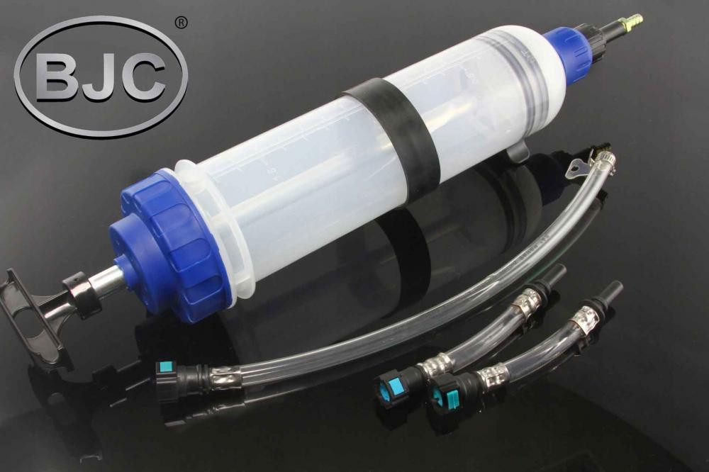 Osdávačka na nasávanie oleja, brzdovej kvapaliny atď. Nevyhnutný nástroj v každej automobilovej dielni. Navrhnuté na nasávanie a tlačenie oleja a tekutín na ťažko dostupné miesta. Piest má tesnenie vyrobené z vysoko kvalitnej gumy odolnej voči dlhodobému pôsobeniu tukov a olejov. Sacia jednotka BJC je vybavená zámkom (ventilom) na zadržiavanie tekutín vo vnútri. Ak chcete začať pracovať s odsávačkou, musíte uvoľniť zámok.