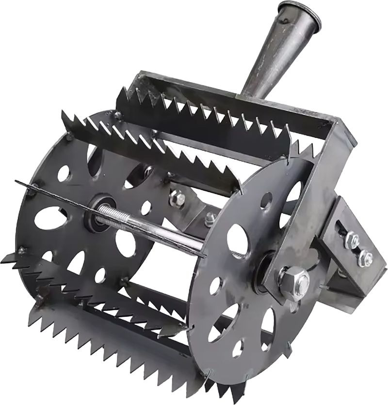 Nástroj je osadený viacerými pilovými kotúčmi s ostrými zúbkovanými hranami a bočnými hrotmi, ktoré zabezpečujú dôkladné prerušenie koreňového systému buriny. Robustná oceľová konštrukcia zaručuje odolnosť voči mechanickému namáhaniu pri každodennom používaní.