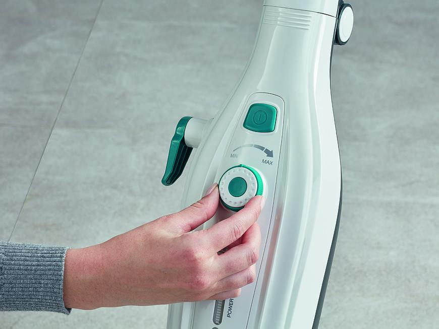 Dôkladné hygienické čistenie dlaždíc, kamenných podláh a lakovaných drevených podláh, individuálne nastaviteľné množstvo pary pre všetky typy podláh, 6 trysiek na efektívne čistenie, vysoká teplota pary odstráni 99,99 % baktérií - úplne bez použitia chémie, doba zahrievania cca 30 sekúnd, veľká nádrž na vodu (550 ml) pre extra dlhú prevádzku, savé mikrovlákno pre perfektnú absorpciu nečistôt, materiál: 90% polyester, 10% polyamid - pred použitím vyperte, čistič s vodným filtrom, vrátane stierky na koberce na osvieženie vzhľadu kobercov, sklopné madlo pre ľahké uskladnenie, extra dlhý kábel 6,5 m, váha cca 2,8 kg.