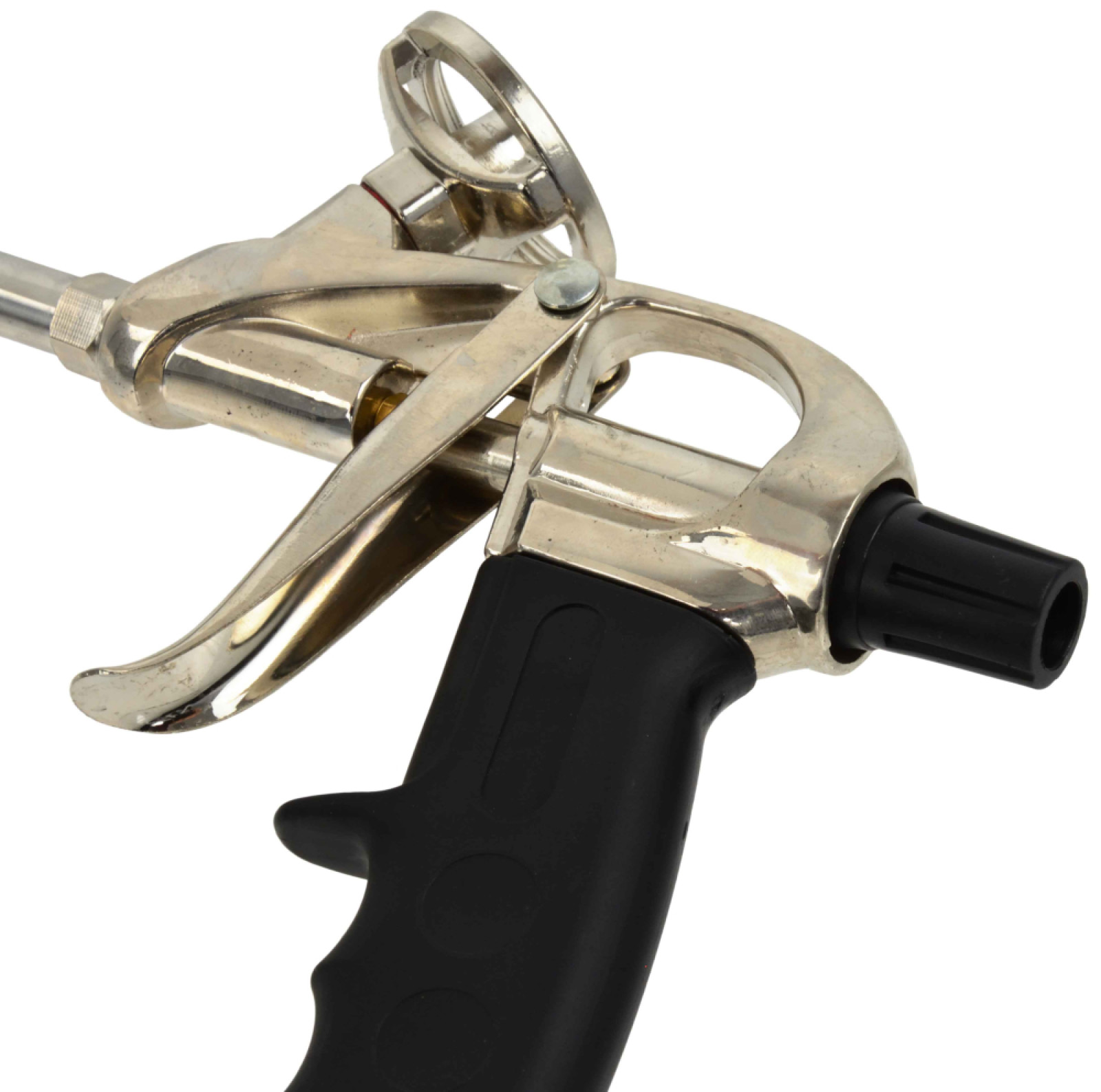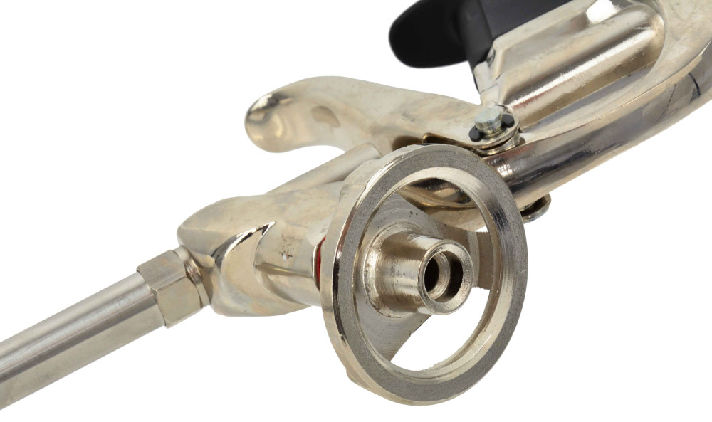 Pištoľ určená na montáž pien. Pištoľ má gombík, ktorý umožňuje presné dávkovanie peny. S nainštalovanou nádobou na penu umožňuje gombík tiež opätovné použitie pištole až 30 dní bez potreby čistenia.