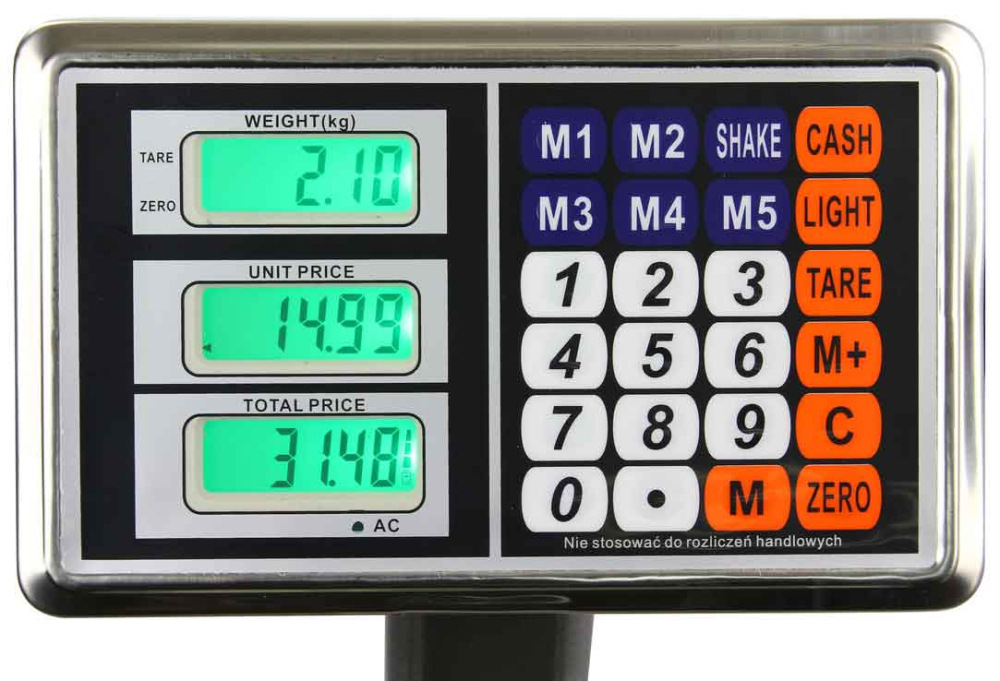 kde je ťažký prístup k elektrickej sieti. Napájací zdroj a batéria sú súčasťou. Hmotnosť do 300 kg, má 5 pamätí na programovanie ceny. Vďaka vstavanej batérii je zariadenie ideálne aj na prácu v teréne. Veľký, čitateľný LCD displej viditeľný v jasných aj tmavých miestnostiach - nastaviteľný jas číslic. Hmotnosť je vypočítateľná (po zadaní ceny váha sama vypočíta hodnotu tovaru)