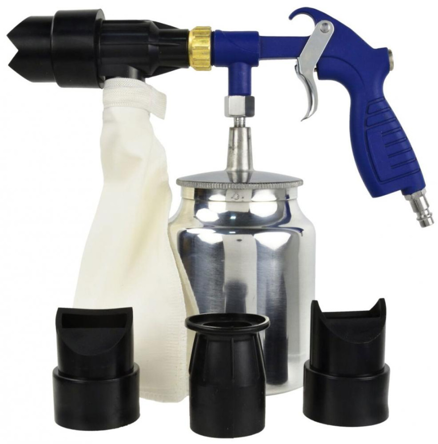 Pneumatická pieskovacia pištoľ s nadstavcami a 1 kg brusiva, GEKO
