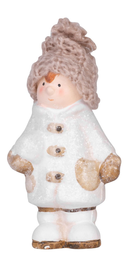 Postavicka Chlapček s pletenou čiapočkou držiac snehovú guľu, terakota, 11 cm