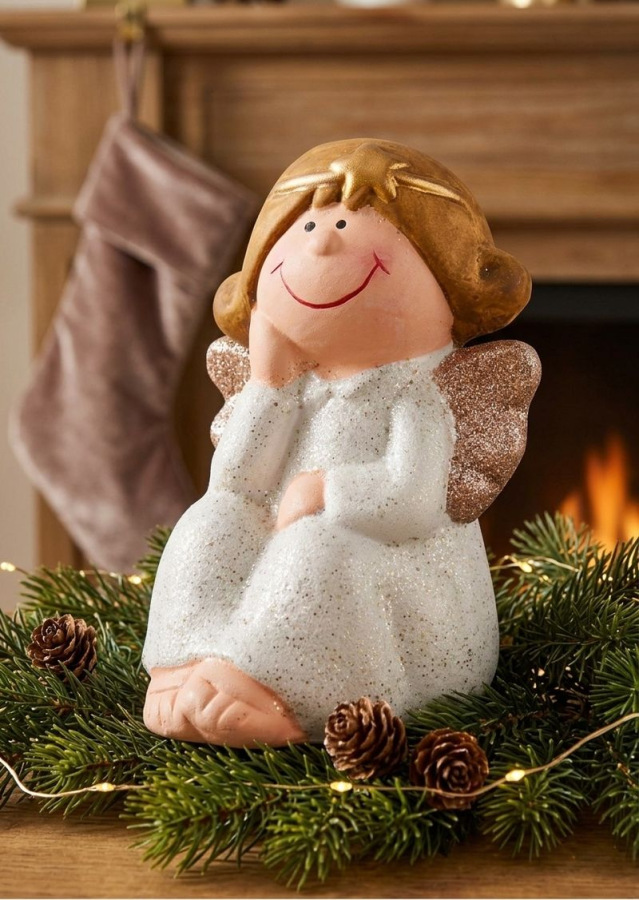 Krásna postavička MagicHome sediaci anjel skrášli váš domov počas vianočného obdobia. Postavička je vyrobená z terakoty a jej rozmery sú 6,7x6,2x11 cm.