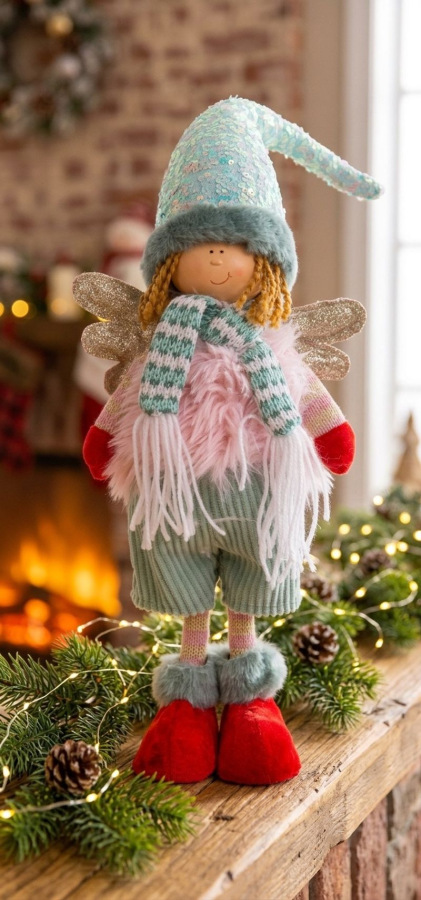 Krásna postavička MagicHome chlapčeka - anjelika s červenými topánkami skrášli váš domov počas vianočného obdobia. Farba je ružovo-zelená. Postavička je vyrobená z tkaniny a jej výška je 64 cm.