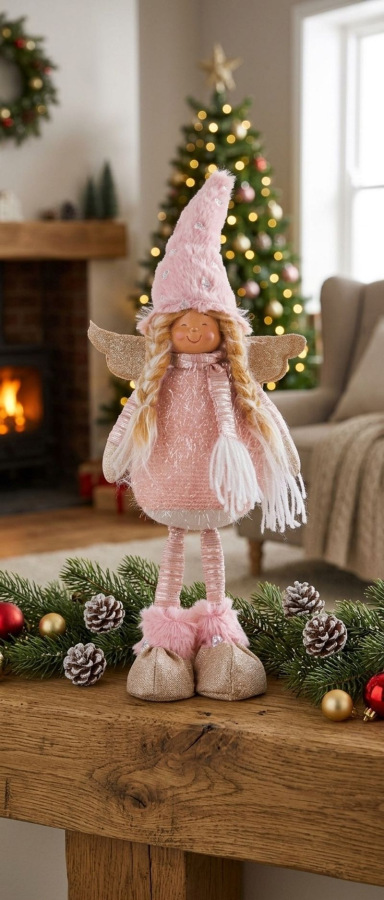 Krásna postavička MagicHome anjelik s blond vrkočmi skrášli váš domov počas vianočného obdobia. Farba je ružovo-hnedá. Postavička je vyrobená z tkaniny a jej výška je 44 cm.