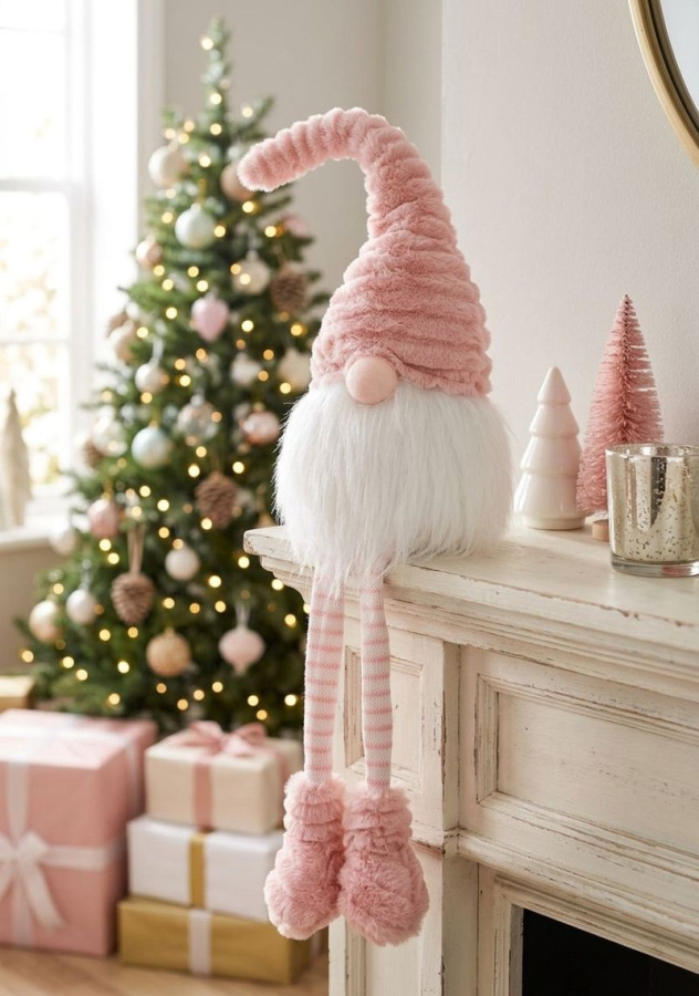Krásna postavička MagicHome škriatok s dlhými nohami skrášli váš domov počas vianočného obdobia. Farba je ružovo-biela. Postavička je vyrobená z tkaniny a jej výška je 42 cm.
