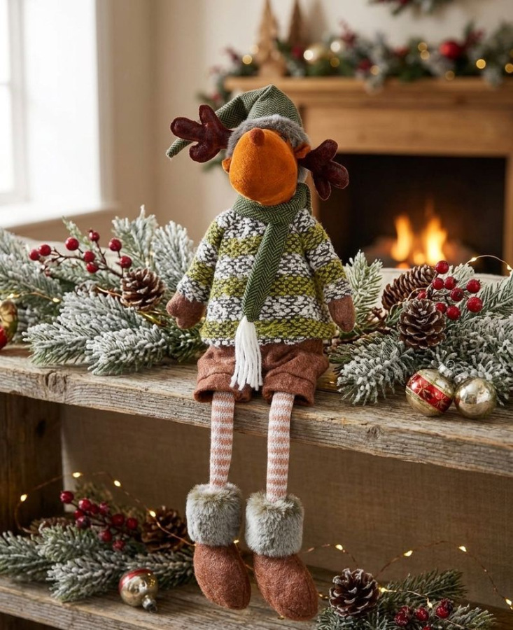 Postavička MagicHome Vianoce, Sob chlapček v krátkych nohaviciach, látkový, zeleno-hnedý, 21x14x70 c