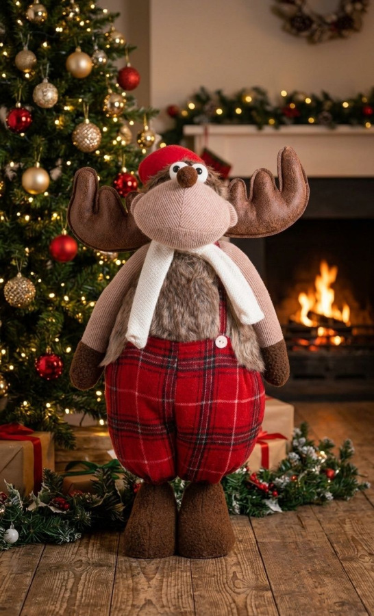 Krásna postavička MagicHome soba v červených nohaviciach skrášli váš domov počas vianočného obdobia. Farba je hnedo-červená. Postavička je vyrobená z tkaniny a jej výška je 92 cm.