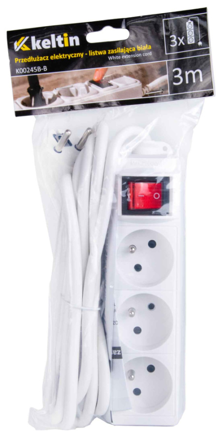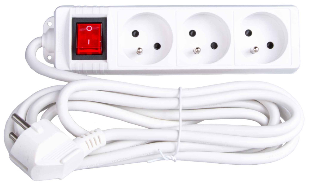 Funkčný 3-zásuvkový predlžovací kábel s uzemnením a vypínačom, ideálny pre každodenné použitie doma aj v kancelárii.