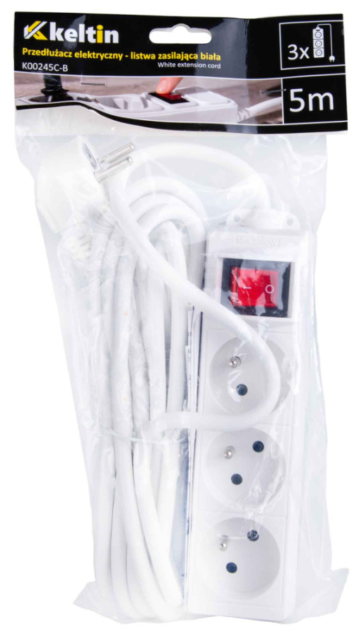 Funkčný 3-zásuvkový predlžovací kábel s uzemnením a vypínačom, ideálny pre každodenné použitie doma aj v kancelárii.