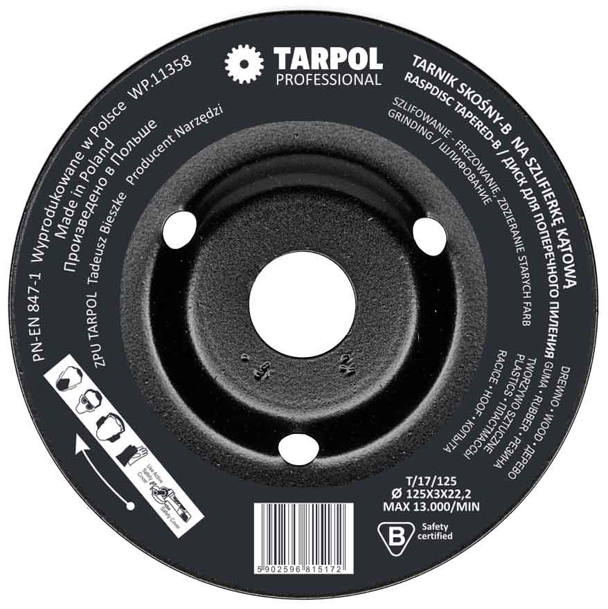 Rašpľa do uhlovej brúsky šikmá 125 x 3 x 22,2 mm nízky zub, TARPOL, T-17