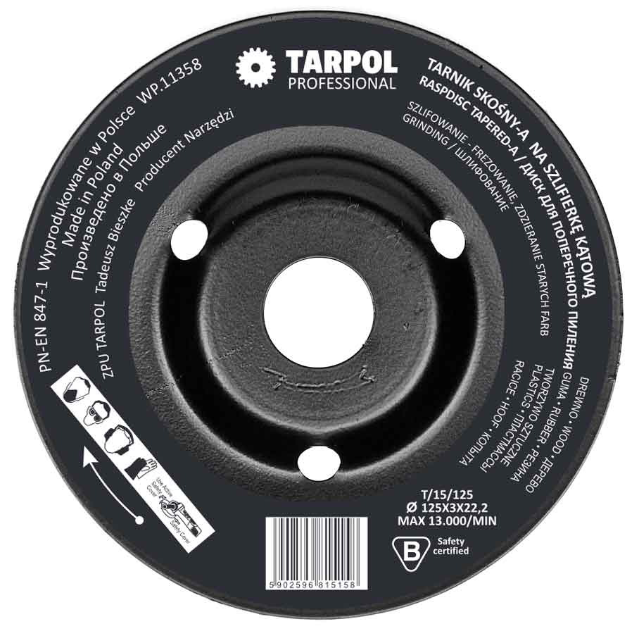 Rašpľa do uhlovej brúsky šikmá 125 x 3 x 22,2 mm vysoký zub, TARPOL, T-15