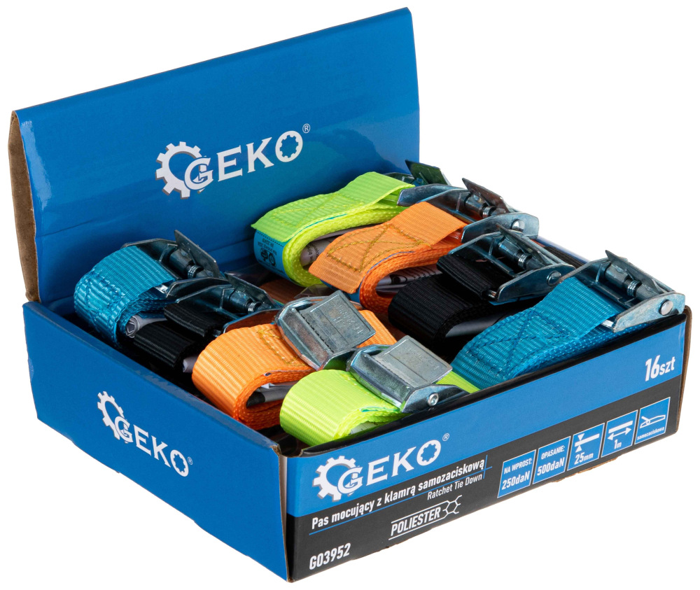 Jednodielne upínacie popruhy so samosvornou prackou určené pre rýchle a bezpečné zaistenie nákladu pomocou páskovania . Vďaka samosvornej pracke umožňujú rýchle a bezpečné zaistenie prepravovaných predmetov bez nutnosti použitia napínača.