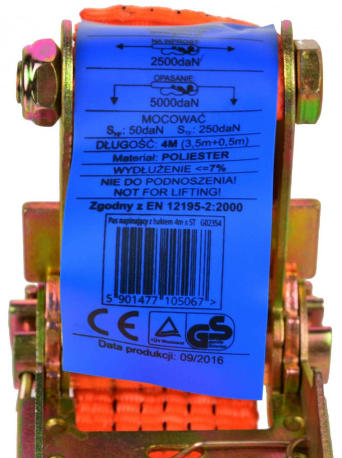 Remeň upínací s račňou 5000 kg, 2 háky, 50 mm x 4 m, GEKO