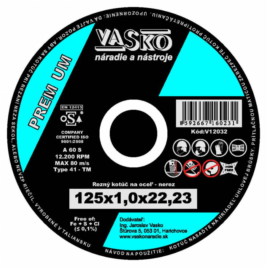 Rezný kotúč na kov a nerez 125 x 1,0 x 22,2 PREMIUM