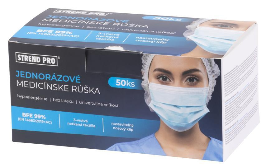 ** Žiadne rúško negarantuje ochranu proti Infekciám, iba poskytuje zvýšenú ochranu. Taktiež nemusí primerane chránit pred aerosólmi a malými ciastockami vo vzduchu s velkostou < 5 µm, kvôli nedokonalému prilnutiu okrajov k tvári. Balenie obsahuje 50 ks.