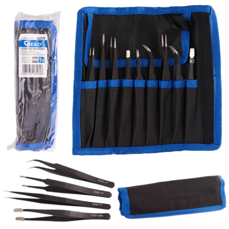 Sada antistatických nerezových pinziet, 9-dielna sada, GEKO