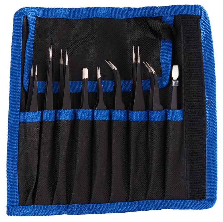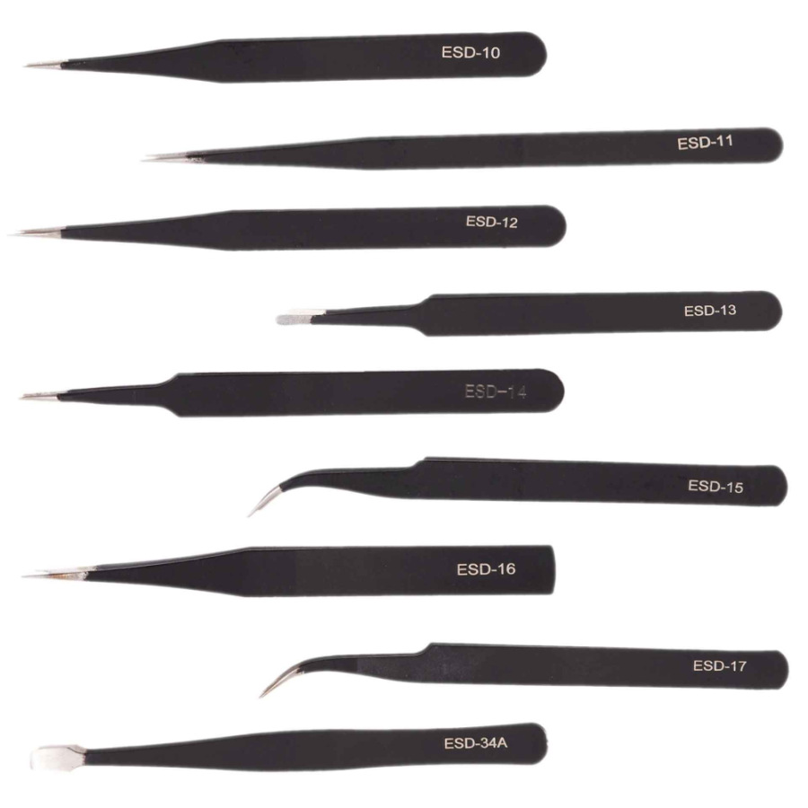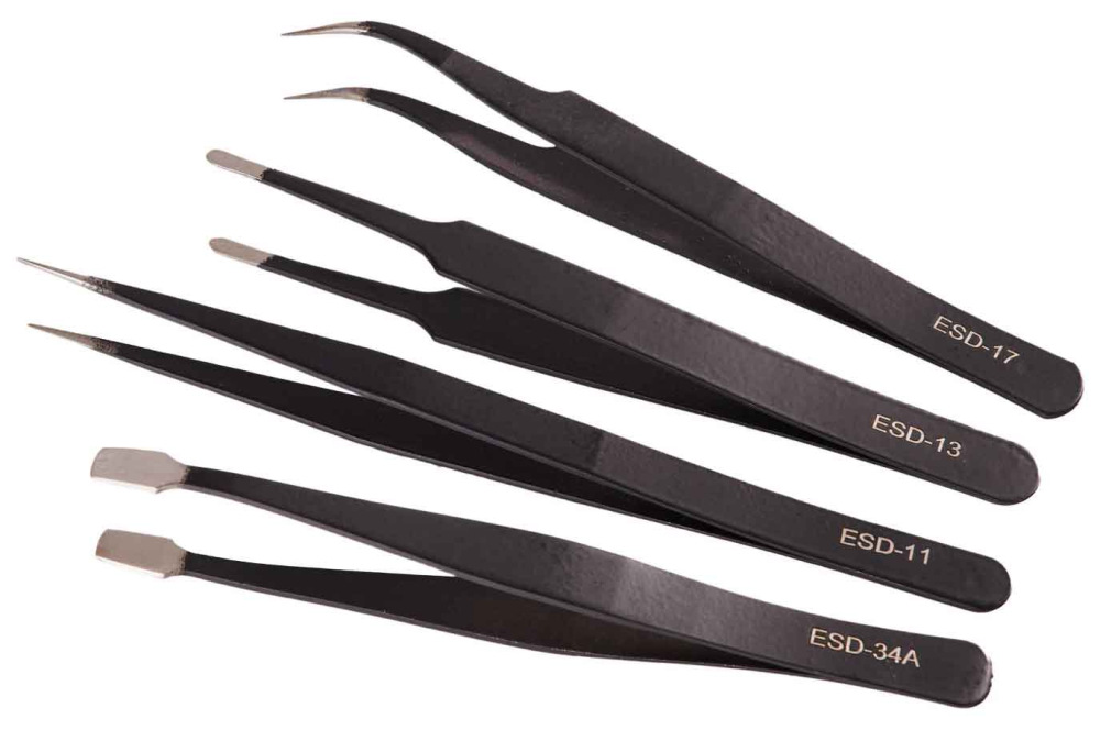 Antistatická pinzeta 12-14cm na vykonávanie presného zdvíhania a presúvania malých prvkov. Ideálne pre použitie v elektronike, šperkoch, kozmeteológii, modelovaní, akváriách, domácnosti a mnohých ďalších oblastiach. Sada obsahuje pinzetu rôznych tvarov a veľkostí pre všestranné použitie. Pinzety majú hrúbku 0,15 mm