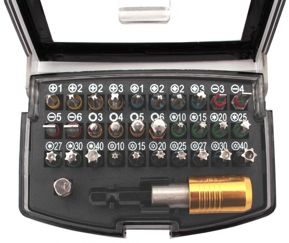 - Obsahuje rôzne typy hrotov vrátane PH, PZ, SL, H, T a Th