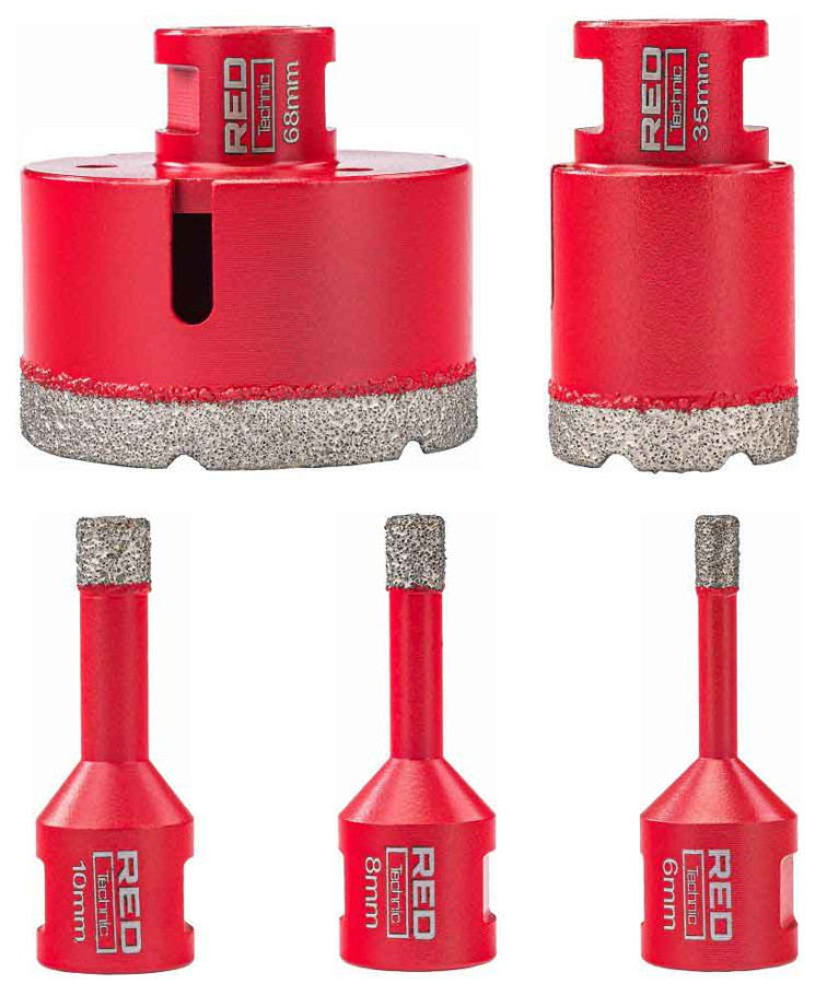 Sada diamantových koruniek, závit M14, rozmery 6,8,10,35,68 mm, RED TECHNIK