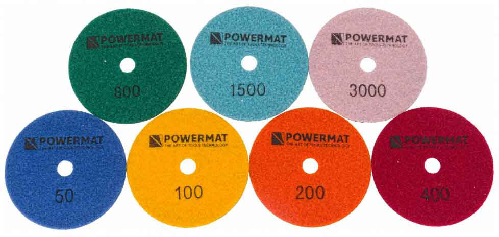Sada diamantových kotúčov zrno 50-3.000, unášací disk 100 mm, brúsenie na sucho, POWERMAT