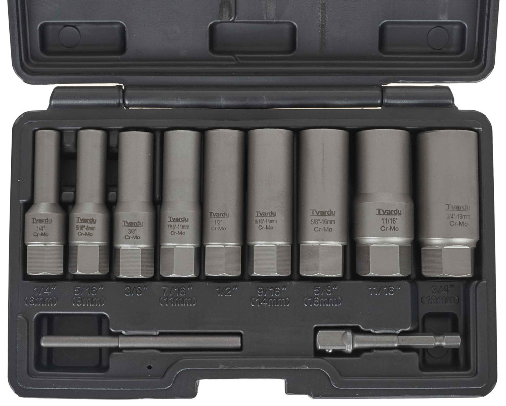 Sada dlhých nástrčných hlavíc na poškodené skrutky, 6-19 mm 11-dielna, TVARDY